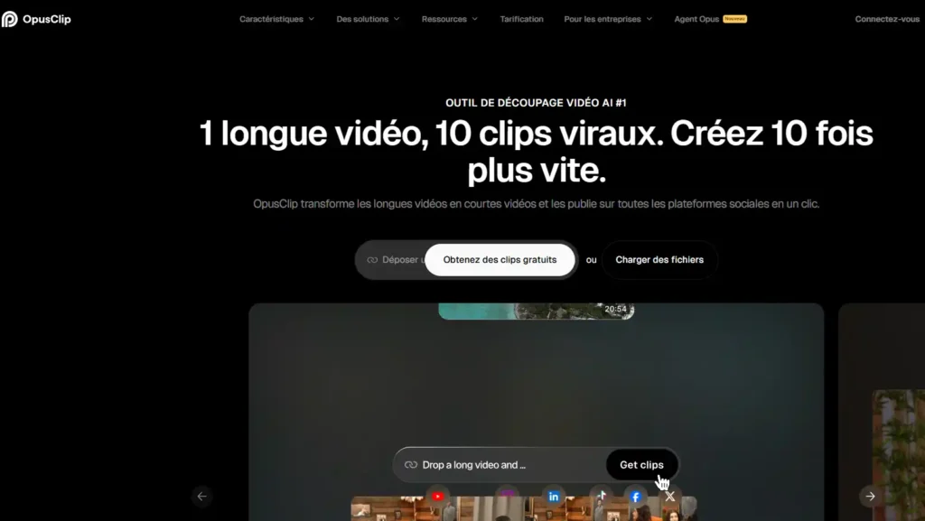 Opus clip est un studio vidéo IA spécialisé dans le repurposing : il analyse vos longs formats (YouTube, podcasts, webinars, interviews, lives), détecte les meilleurs passages, génère des hooks percutants, recadre en vertical, ajoute des sous-titres dynamiques, du B-roll pertinent et exporte des clips prêts à poster. Son score de “Virality” aide à prioriser les extraits qui ont le plus de chances de performer, tandis que le brand kit et les templates garantissent une identité cohérente.