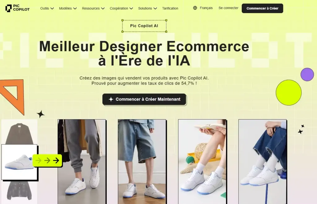Pic Copilot est une plateforme IA de création d'images produits et visuels marketing pour le e-commerce. La plateforme génère des photos studio professionnelles sans séances photo coûteuses, propose l'essayage virtuel de vêtements chaussures accessoires sur mannequins IA, et crée des arrière-plans et scènes lifestyle automatiquement. Plus d'1 million de marques mode et e-commerce utilisent la plateforme avec des résultats prouvés augmentation taux de clic 54.7%. Vendeurs e-commerce Amazon Shopify eBay Etsy WooCommerce dropshippers versus shooting photo coûteux mannequins réels logistique complexe.