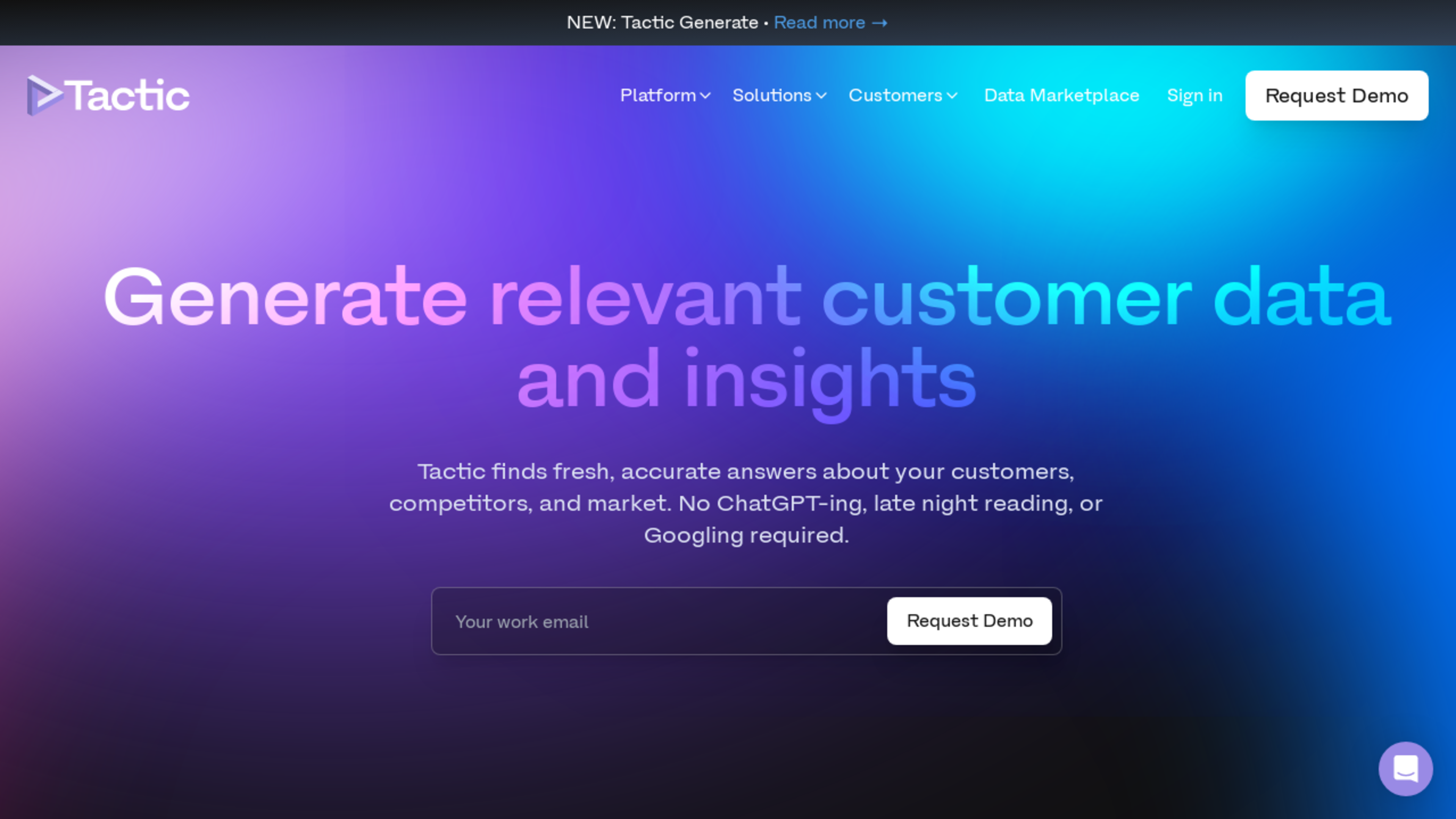 Tactic utilise modèles IA fine-tuned avec architecture multi-step reasoning spécifiquement optimisés pour construction profils clients, surpassant GPT généraliste en précision qualité insights générés sur données customer research.