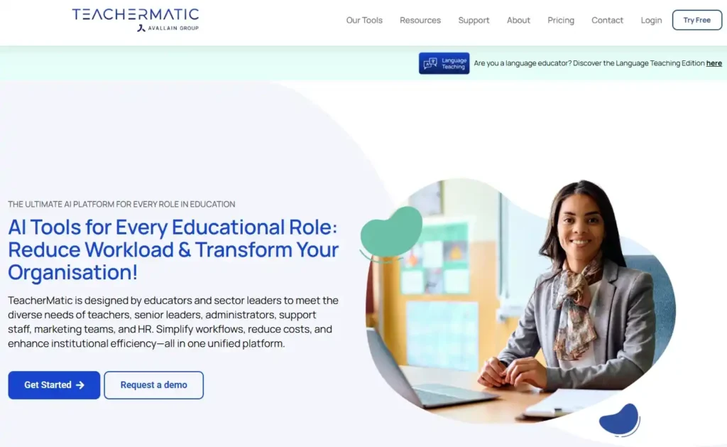 TeacherMatic est une plateforme d'intelligence artificielle offrant plus de 100 générateurs spécialisés pour aider les enseignants, leaders scolaires et équipes administratives à réduire leur charge de travail et créer des ressources pédagogiques.