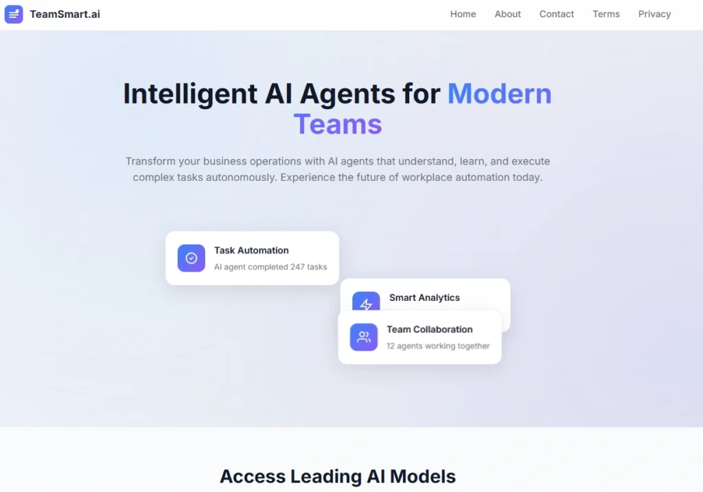 TeamSmart AI exploite l'intelligence artificielle pour créer un environnement de travail collaboratif où plusieurs modèles IA travaillent ensemble. La plateforme combine les forces de différents moteurs d'IA pour offrir des réponses contextuelles adaptées à chaque profession. Les agents spécialisés utilisent des modèles de langage avancés pour comprendre les nuances de domaines complexes comme le juridique ou la comptabilité. Le système apprend continuellement des interactions pour améliorer la pertinence des suggestions. TeamSmart AI démocratise l'accès à l'expertise IA en centralisant plusieurs outils puissants sur une interface unique et sécurisée.