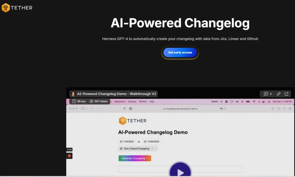 Tethered est un outil de génération automatique de changelogs alimenté par GPT-4. Il transforme vos commits GitHub, tickets Jira et mises à jour Linear en notes de version professionnelles sans effort manuel. Conçu pour les équipes produit et startups, Tethered élimine la corvée de documentation technique.