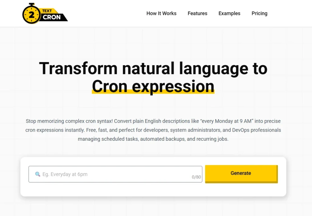 Text2Cron offre un ensemble de fonctionnalités conçues pour simplifier la création d'expressions cron :