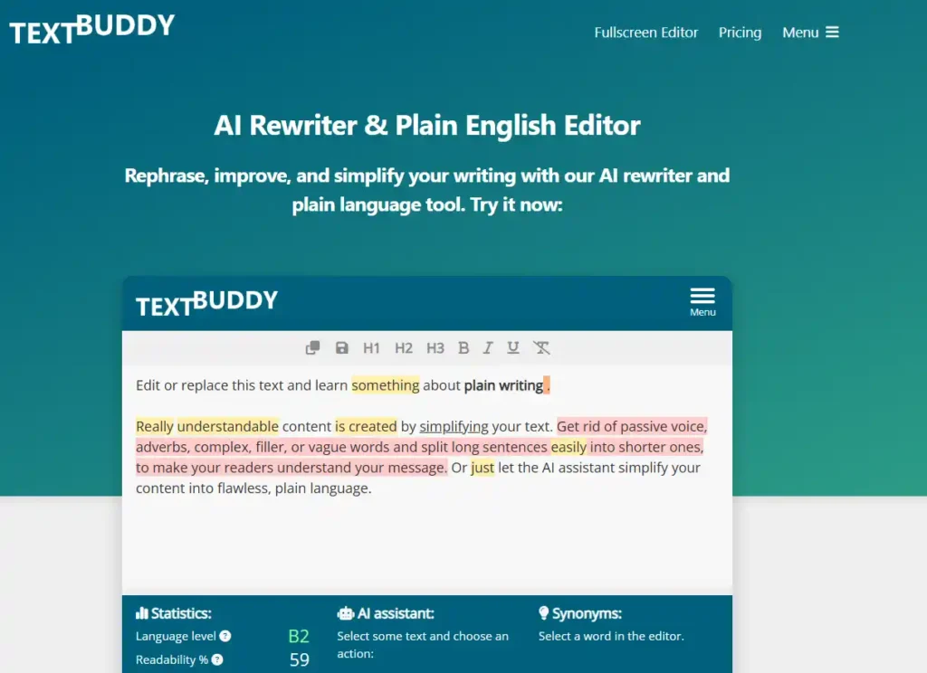 TextBuddy est un excellent assistant de rédaction, mais il ne remplace pas totalement un rédacteur humain. Il optimise et accélère le processus de création de contenu, mais une intervention humaine est souvent nécessaire pour affiner le ton, la précision et l’originalité du texte.